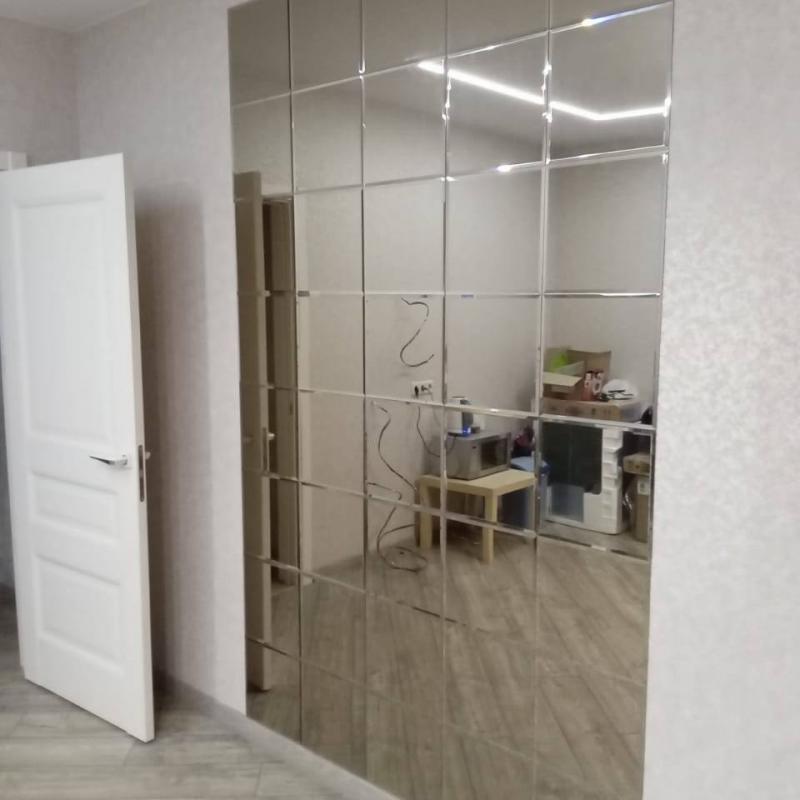 Использована серебряная квадратная зеркальная плитка 18х18.